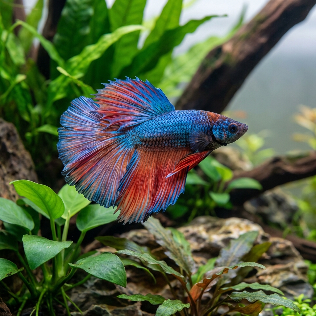 Note: Do not keep with other bettas or fin-nippers